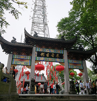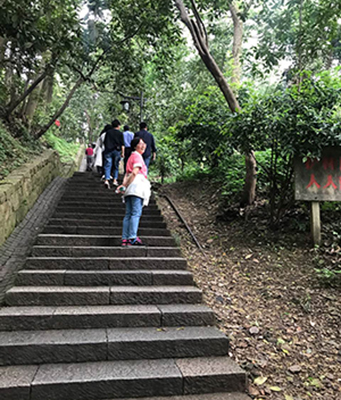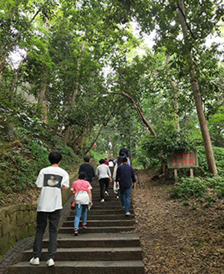 沿着石阶一路上行,路两旁绿树成荫,植被茂盛,大多是江南名贵的黄樟树,散发着阵阵清香;远处时而传来游客祈福的钟声,还有那随处可见的为人们提供休憩的石椅、凉亭……