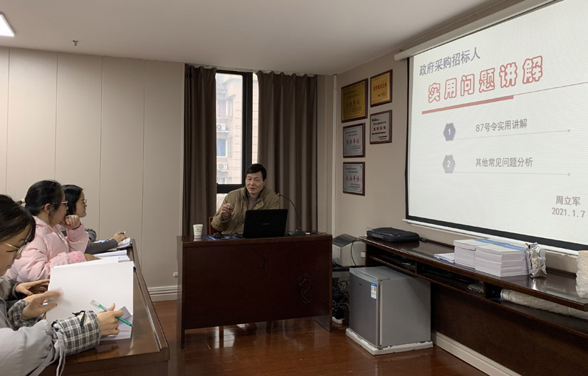 1月7日新年伊始,公司为了提升招投标相关的业务能力,组织开展政府采购专题培训,特邀金华市财政局周立军进行《政府采购货物和服务招标投标管理办法》授课。公司的各部门负责人、招标代理人员及部分业主单位相关人员等参加了学习。