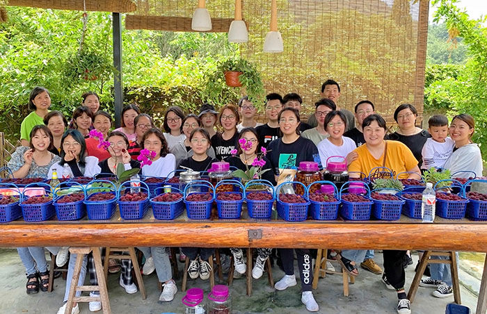 两个小时的采摘活动,和同事一起品尝自己亲手采摘的杨梅,吃起来特别的酸甜爽口,一口下去,满嘴爆汁,瞬间幸福感爆棚。最后再和杨梅来一个美美的合照,把大家的欢声笑语,热闹的调侃,互帮互助,协力合作都记录在这个美好的瞬间。