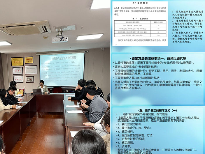 11月28日,我司组织的工程造价司法鉴定专业培训会在公司会议室顺利开展。会议由造价工程师洪黎虹主持,造价相关人员参加了本次培训会。