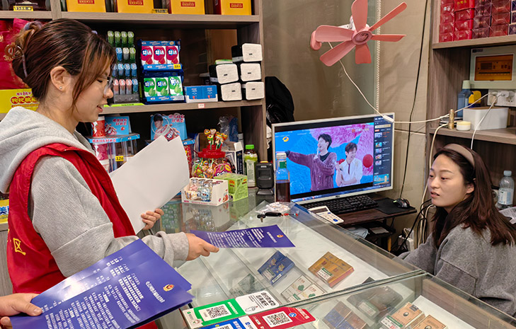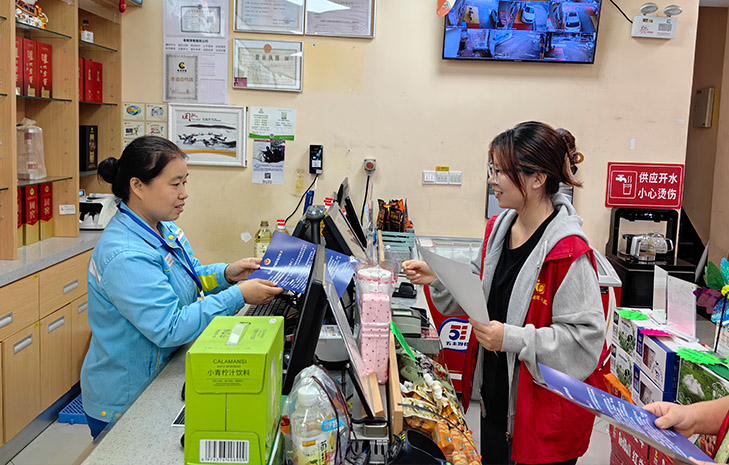 志愿者告知并提醒商户,在日常经营中定要增强自我安全防范意识,保持高度警惕,谨防上当受骗的同时,成为“电诈工具人”,面临金融惩戒、电信网络惩戒和信用惩戒等风险。