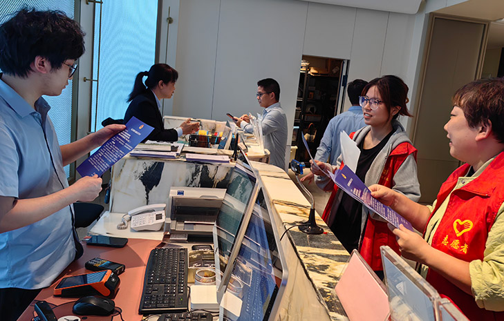 志愿者们向沿街商户发放反诈宣传资料,为商户讲解当前电信网络诈骗出现的新方式,如以“支付手续费”“缴纳解冻金/保证金”“投资入股”“平台充值”等理由,诱骗受害人大额取现或购买黄金交给指定人或运送到指定地点。此类大额取现或购买黄金交给指定人员或运送到指定地点不仅被骗钱财,还帮助诈骗分子完成了赃款转移。